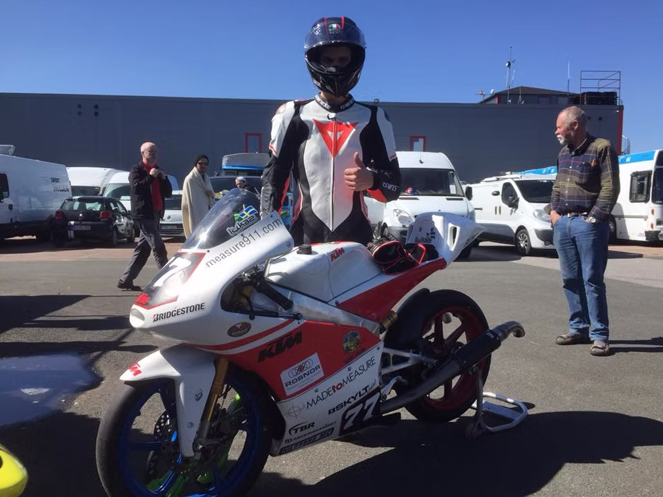RobNor believes in talent. In robotics as well as road racing. We sponsor 18-year-old Lukas Wendeborn who lives his dream. He competes in Moto3/GP125 for the season. This weekend he won the Swedish Championship opening race for the season at Anderstorp. Congratulations to Lukas and his team.